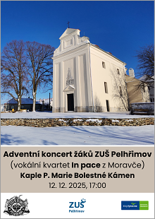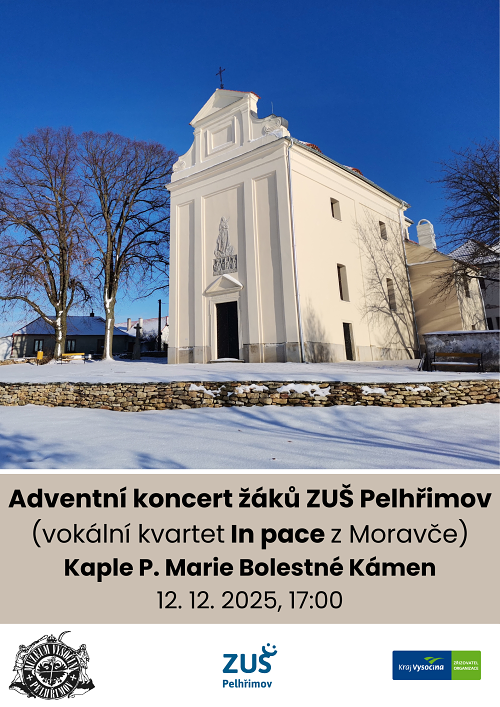 Muzeum Vysočiny Pelhřimov, p. o. vás srdečně zve na Adventní koncert, který se uskuteční v pátek 12. prosince 2025 od 17:00 hodin v kapli Panny Marie Bolestné v Kámeně. Zazní skladby v podání talentovaných žáků Základní umělecké školy Pelhřimov. Součástí programu bude také vystoupení vokálního kvartetu In pace z Moravče, který obohatí večer svým jedinečným hudebním projevem. Koncert slibuje neopakovatelnou atmosféru adventního času v půvabném prostředí historické kaple.