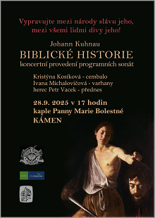 Srdečně vás zveme v neděli 28. září 2025 od 17:00 hodin do kaple Panny Marie Bolestné v Kámeně na koncertní komponované provedení sonát na biblická témata. Autorem sonát je německý varhaník a skladatel Johann Kuhnau (1660-1722) a každá jeho sonáta detailně zobrazuje konkrétní biblický příběh.