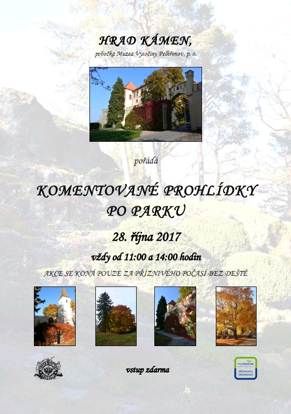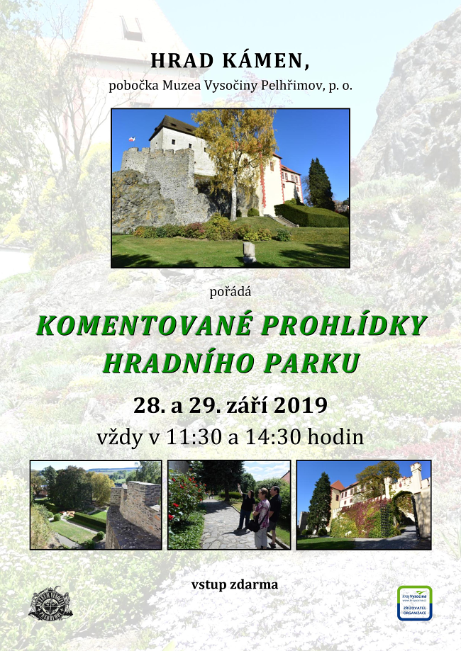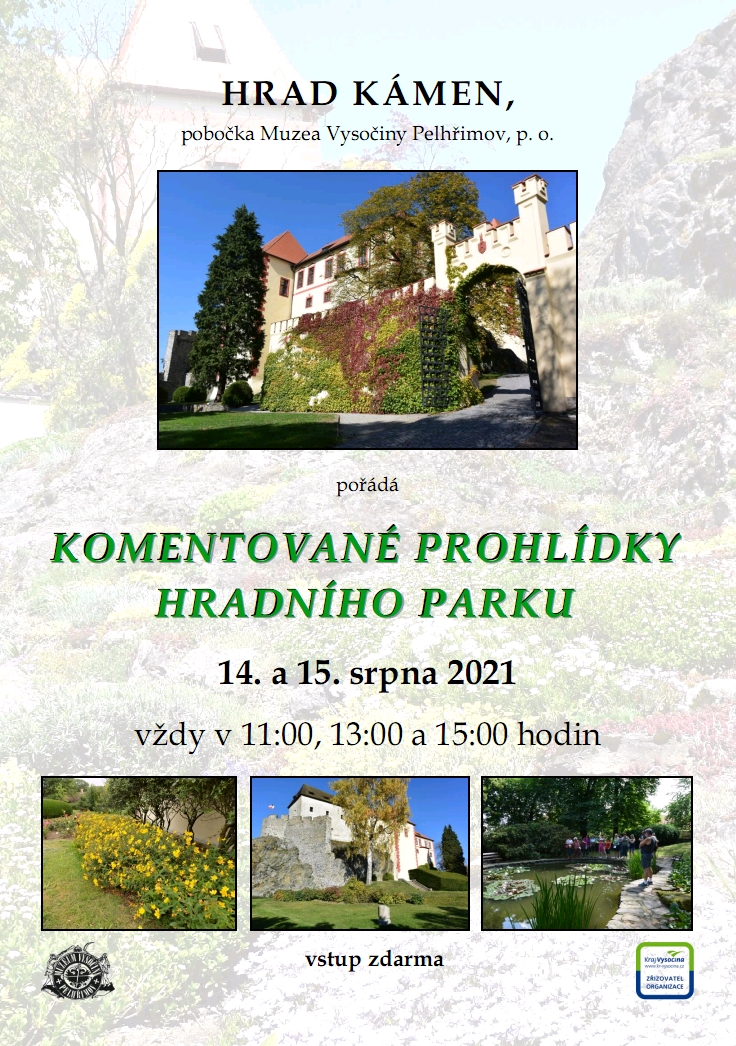 Komentované prohlídky po hradním parku budou probíhat celý víkend, a to vždy od 11:00, 13:00 a 15:00 hodin. Více než hektarový park hradu Kámen je pozoruhodný především svým skalním útvarem ze serpentinitu. Záhřevná skála a zbytky hradního opevnění vytváří vhodné podmínky pro růst širokého spektra rostlin. Koncepce výsadby nabízí zajímavé pohledy a zákoutí po celý rok.