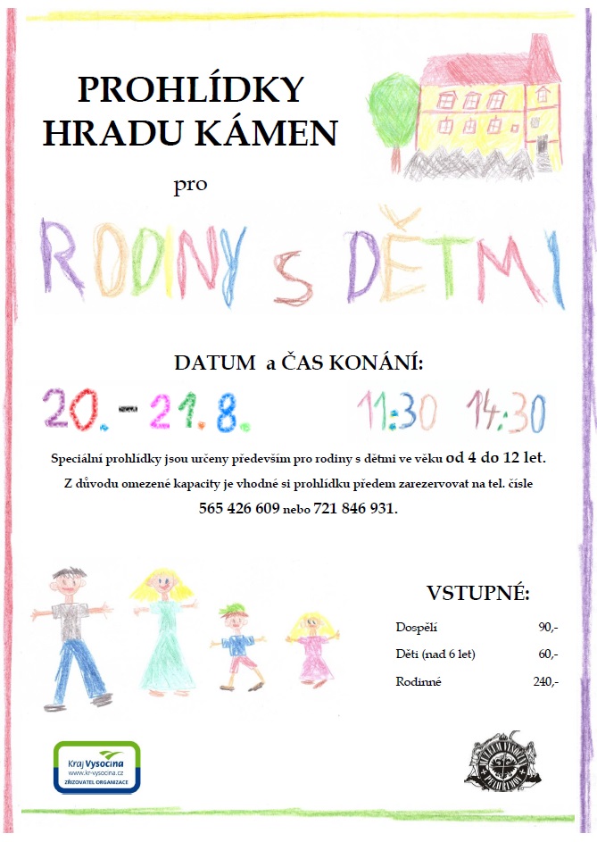 Ve dnech 23. a 24. července 2016 pořádá hrad Kámen, pobočka Muzea Vysočiny Pelhřimov, p.o. prohlídky hradu pro rodiny s dětmi. Tyto prohlídky jsou sestaveny tak, aby se nejmenší návštěvníci zábavnou formou dozvěděli něco o hradě a jeho historii. Prohlídky se budou konat v 11:30 a 14:30 a jsou určeny především pro děti od 4 do 12 let. Z důvodu omezené kapacity je vhodné si prohlídku předem zarezervovat na tel. čísle 565 426 609 nebo 721 846 931.
