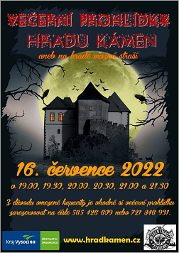 V sobotu 11. července se od 19:00 uskuteční večerní prohlídky hradu Kámen. Již samotný název – Večerní prohlídky hradu Kámen aneb hrad ožívá po setmění – napovídá, že se tyto prohlídky ponesou v netradičním duchu.