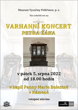 Muzeum Vysočiny Pelhřimov, p. o. srdečně zve všechny posluchače v sobotu 7. června 2025 od 17:00 hodin do kaple Panny Marie Bolestné v Kámeně na Jarní koncert Pěveckého sboru Slavík Pacov, z. s. Mimo jiné zazní tematické jarní lidové písně a skladby klasické hudby.