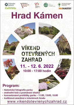 V letošním roce se hrad Kámen a jeho park opět připojí k celoevropské akci s názvem Víkend otevřených zahrad, která proběhne ve dnech 13. a 14. června. Akci zaštítilo občanské sdružení Průvodce parkem ve spolupráci se Společnostní pro zahradní a krajinářskou tvorbu, o.s. a Národním památkovým ústavem. Tradice otevírání běžně nepřístupných zahrad veřejnosti (Open Garden & Squares Weekend) vznikla ve Velké Británii a probíhá vždy během druhého červnového víkendu. V České republice se do projektu zapojují i běžně navštěvovaná místa, ovšem s doplňkovým programem. Obvyklou formou programu bývají komentované prohlídky. Podobně tomu bude i na Kámeni. Po oba dva dny budou probíhat komentované prohlídky po hradním parku, a to vždy v 11:00 a ve 14:00. Prohlídky budou zaměřeny na historii, současnost a právě probíhající revitalizaci parku, dále pak na jeho faunu i flóru. Kromě těchto informací se návštěvníci mohou těšit na znalostní kvíz, malířskou dílnu a květinové vazby v interiérech hradu. Více než hektarový park hradu Kámen je pozoruhodný především svým skalním útvarem ze serpentinu. Záhřevná skála a zbytky hradního opevnění vytváří vhodné podmínky pro širší spektrum rostlin, včetně některých citlivějších, jakými jsou například magnólie a cesmína. V parku nechybí ani vzrostlé stromy a okrasné keře. Kromě flóry je park domovem mnoha živočichů. Více informací o parku hradu Kámen se návštěvníci mohou dozvědět o víkendu 13. – 14. června 2015. Hradní park bude otevřen od 10:00 do 17:00.